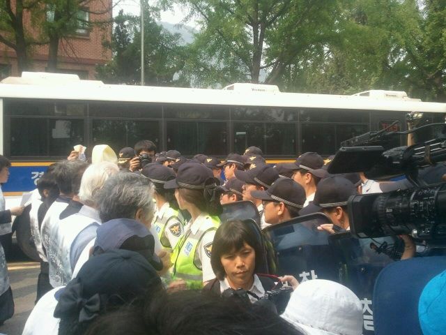 #쌍차 문제해결을 위한 이명박대통령 면담요구 사회원로기자회견. 청와대로 가는 우리의 발걸음을 경찰이 막습니다. 어이없는 현실.. 칼라티비에 생중계 되고 있습니다. 함께해주실분들 청운동으로와주세요! #kctu http://t.co/Qyx2ugul